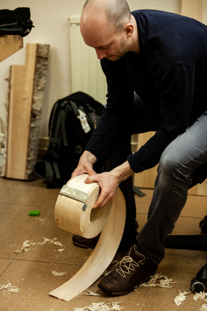 Det gjorde vi genom att placera ämnena i en basningslåda och tillföra ånga. Ångan värmer upp fibrerna och gör ämnet mer elastiskt och gör det sedan enklare att böja dem.